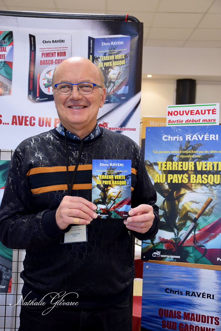 J’ai pris plaisir à retrouver des auteurs, dont Chris Ravéri et son tout nouveau roman « Terreur verte au Pays Basque » dont j’ai réalisé la couverture.